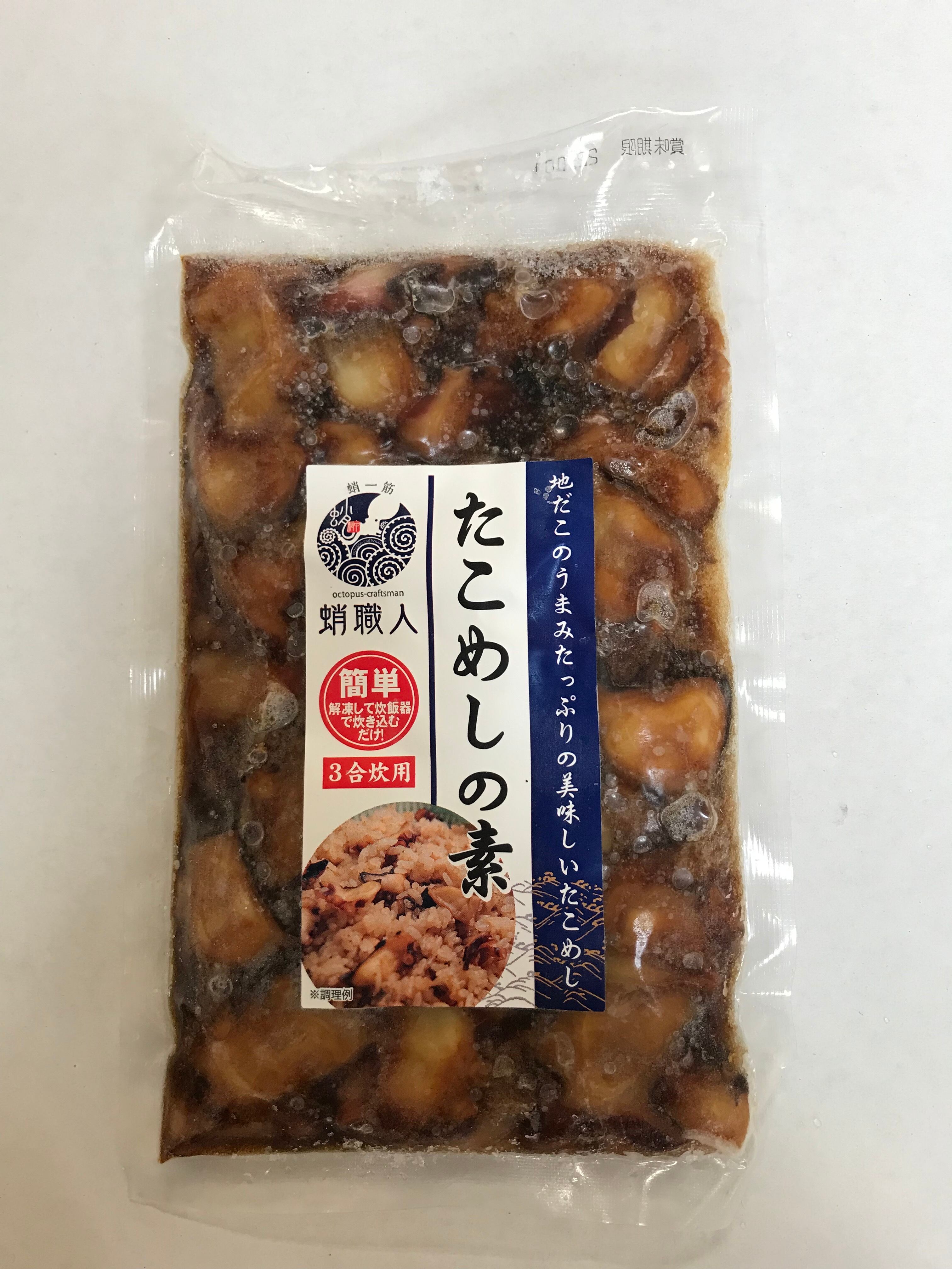 手軽に気軽に美味しいたこめしを袋ごと流水で解凍し、洗ったお米3合にタレごと加えて炊飯器で炊くだけの手軽さです。冷凍庫にストックでき、食べたいときや急な来客のときにすぐに作れます。お米にたこめしの素を加えるだけで、地だこのうまみたっぷりの美味しいたこめしが召し上がれます。お好みで、人参や油揚げを加えて炊いたり、仕上げに三つ葉や小ねぎを散らすと彩りがよいです。