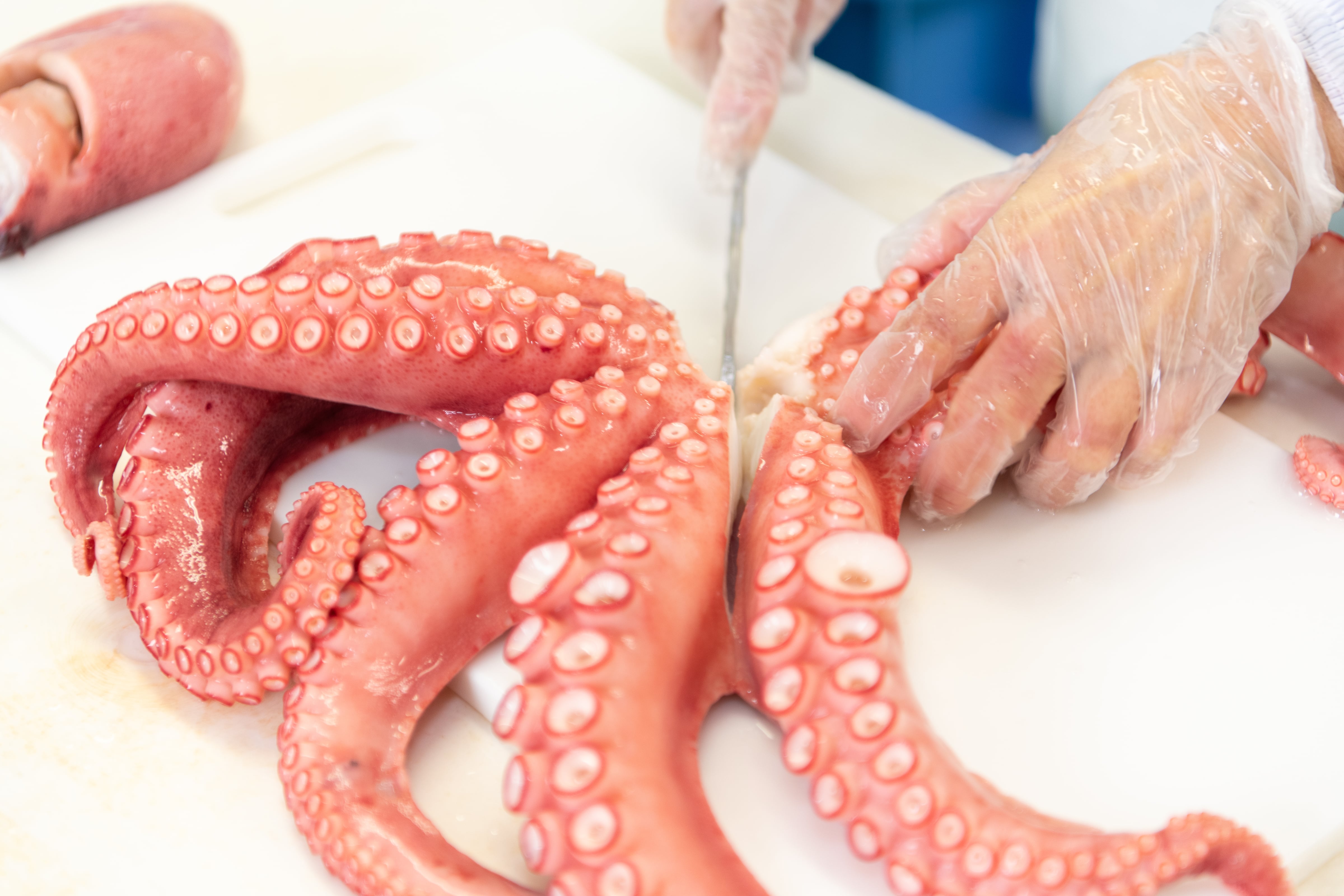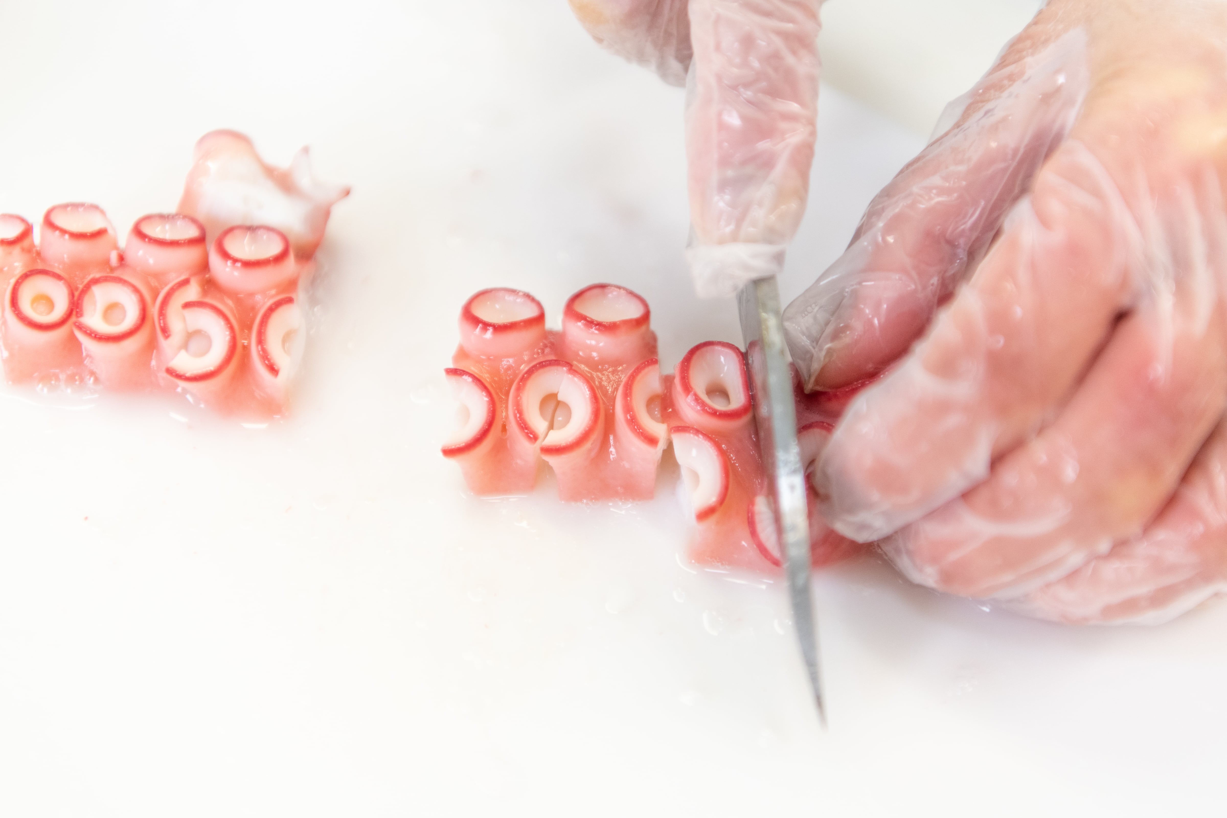 モロッコ・モーリタニアのマダコを使用し、職人による丁寧な手作業でカットしております。